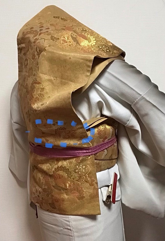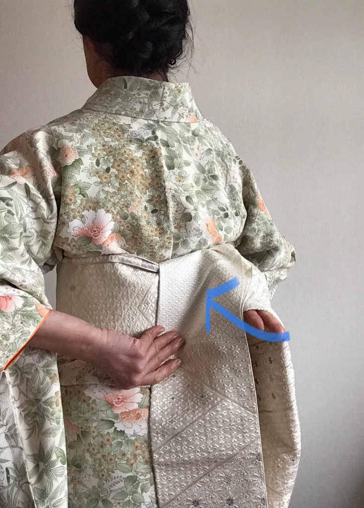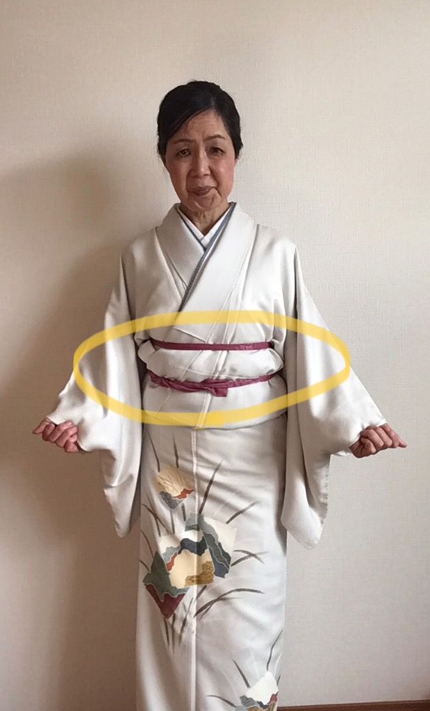 大杉着物教室では腰回りの着物を引いての